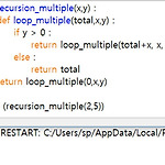 ***곱셈함수 - 재귀함수로 표현 -> 반복되는 덧셈 예). 2 X 5 = 10 2 + 2 +2 +2 +2 = 10 5 + 5 = 10 multi(2,5) 1. 재귀함수 def recursion_multiple( x, y ) : if y>0 : return x + recursion_multiple( x, y-1) else : return 0 2. 꼬리재귀함수 def tail_recursion_multiple( x, y ) : def loop( total, x, y ) : if y>0 : return loop( total +x, x, y-1) else : return total return loop( 0, x, y ) 3. 루프함수 def loop_multiple( x, y ) : total = 0 whi..